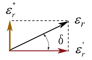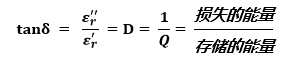 常见的描述介电常数特性的还有一个参数,叫损耗角正切。当我们在矢量图中描述复介电常数时,其实部和虚部呈90°正交关系,二者的矢量和与实轴形成一个夹角,我们把这个夹角δ称为损耗角,这个角的正切值称为损耗角正切,它等于介电常数定义中虚部和实部的比值。损耗角正切还有一个常用的名称——损耗因数(Df),它等于品质因数的相反数。其物理含义是在一个周期内介质损失的能量和贮存能量的比值。