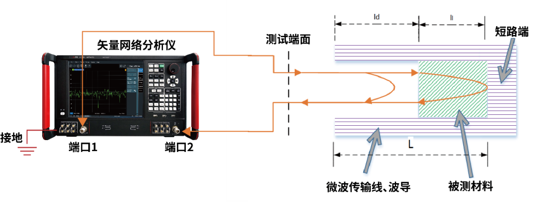 该测试方法将待测样品放在终端短路的微波传输系统中,作为传输系统的一部分通过测量填充材料后波量的偏移和驻波计算出材料的复介电常数。