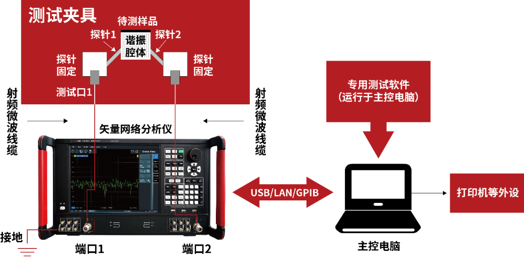 测试方法:将介质放在各种微波谐振腔内,得到加载样品前后腔体的谐振频率和品质因数,由严格的电磁场理论分析求解出待测样品的复介电常数,该方法的测试精度很高。